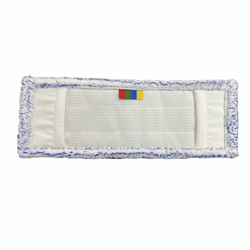 The EXCELLENT BLUE-WHITE DB-FC mop cover combines 100% PES/MF microfiber with a woven polyester cover for excellent dirt and water absorption. Available in 4-color coding, it works efficiently on all floor types, dry or wet. Ideal for healthcare, public facilities, and professional cleaning, it ensures fatigue-free, ergonomic operation.