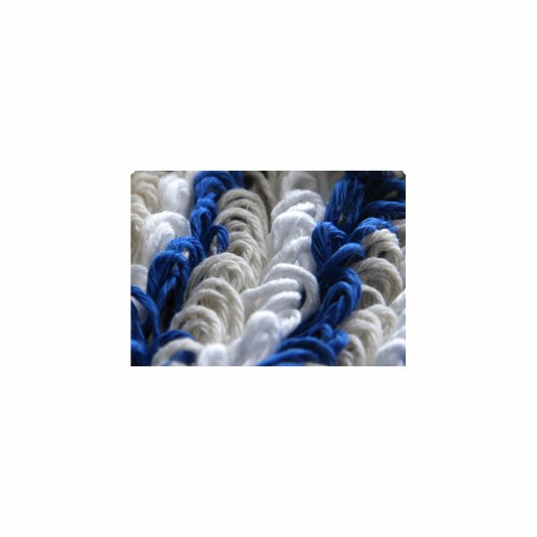 The BLUE-WHITE-NATURE yarn colours provide clear visibility of soil during use, while the high-quality tufting process secures every loop to maintain strong output throughout its lifespan.