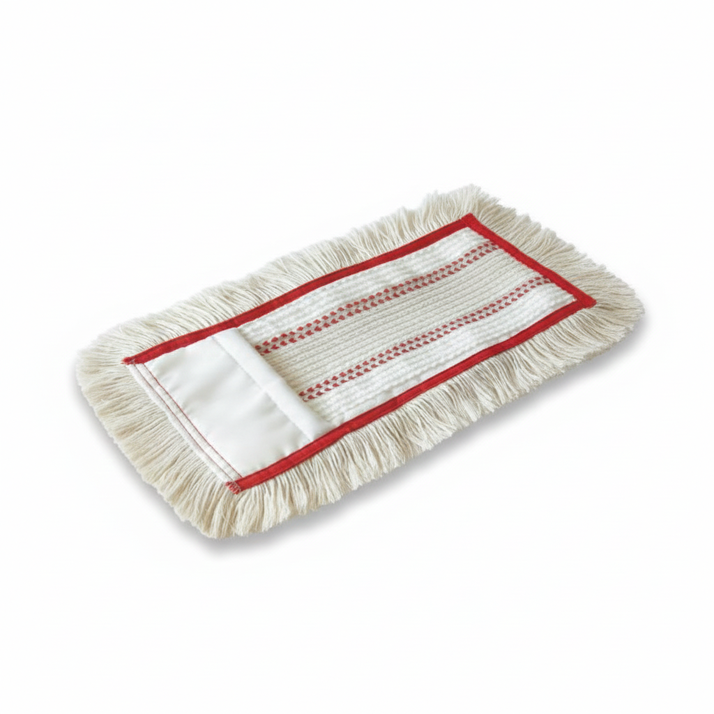 The Hospital Quattro Mop Red features a top sheet made of 50% fine cotton and 50% polyester for optimal absorbency. Reinforced polyester pockets with sponge inserts support smooth sliding. Its mixed yarn cover ensures high durability, excellent gliding, and superior dirt and water absorption. Suitable for wet and dry cleaning on smooth, coated, and uncoated floor coverings, it is ideal for heavy-duty cleaning in hospitals and public facilities. Wash at 60 °C and avoid fabric softeners.